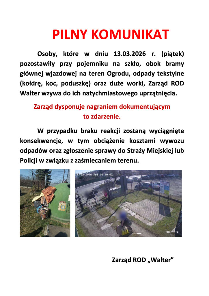 Od przyszłego roku zawiadomienia o podobnych wydarzeniach będą przesyłane wyłącznie drogą elektroniczną – jednak tylko do działkowców, którzy udzielili pisemnej zgody. Dane adresowe będą przetwarzane zgodnie z przepisami RODO oraz wyłącznie w celach informacyjnych związanych z działalnością ROD „Walter”. Każdy działkowiec ma prawo w dowolnym momencie wycofać udzieloną zgodę na otrzymywanie wiadomości drogą elektroniczną.